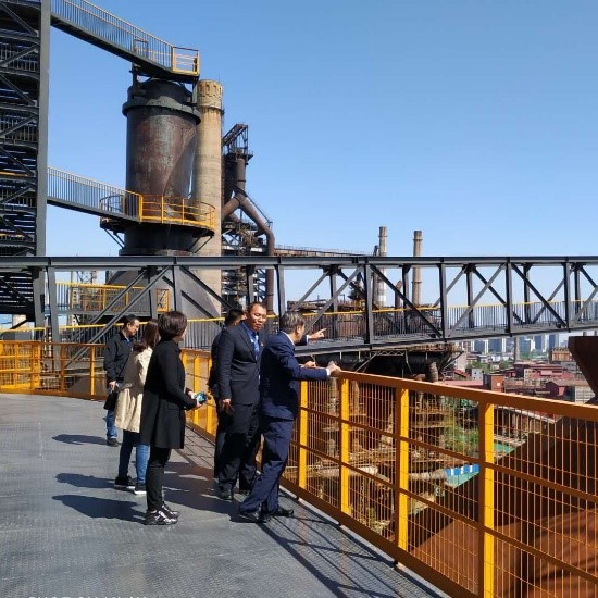 最后,一行人登上首钢园区的三号高炉。历经数年改造,这座首钢功勋高炉已经实现从废旧建筑到工业博物馆的华丽变身,充满工业文明的张力和现代科技的酷炫魅力。大家居高临下总揽首钢园区全貌,回顾其过去辉煌灿烂的工业历史,再看如今惊艳世人的崭新面貌,心中充满对首钢智慧创新的钦佩之情,赞叹新中国成立70年来北京的巨大变化和祖国的辉煌成就。
