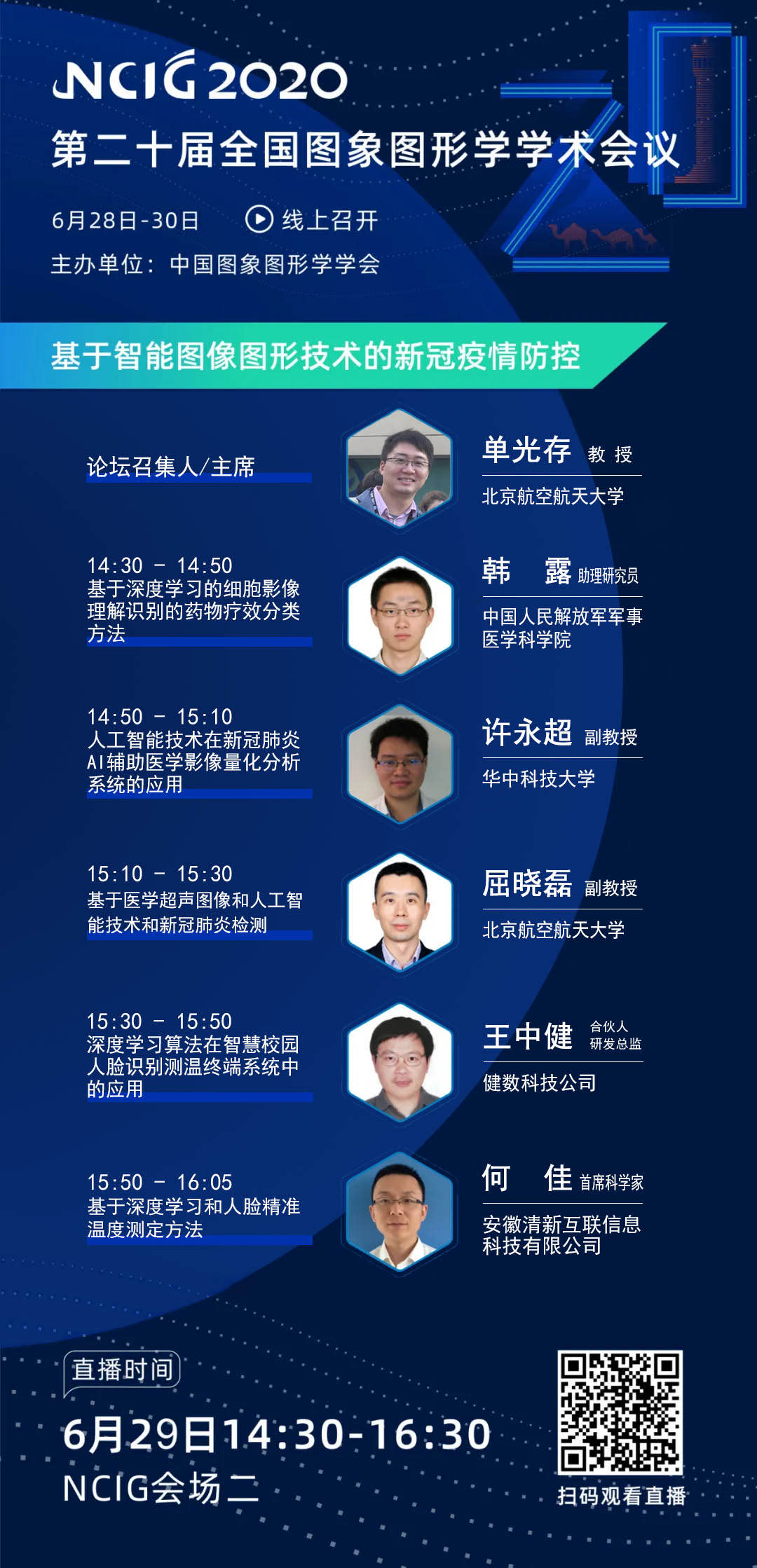 北航新闻网7月7日电(通讯员 单光存)6月29日下午,由中国图象图形学学会和民建北京市海淀区委北航支部联合主办,第二十届全国图象图形学学术会议(NCIG 2020)组委会协办的第二十届全国图象图形学学术会议线上专题论坛举行,民建北航支部副主委、中国图像图形学会高级会员及青委会委员、北航仪器科学与光电工程学院单光存教授作为论坛召集人组织了本次专题论坛,论坛主题为“基于智能图像图形技术的新冠疫情防控”,解放军军事医学研究院韩露博士、北航仪器科学与光电工程学院屈晓磊副教授、民建北京海淀区委副主委赵晓光、中国图象图形学学会马惠敏秘书长,以及5000多名来自全国图象图形学学会会员、人工智能学界业界人士参加了此次线上论坛讨论。