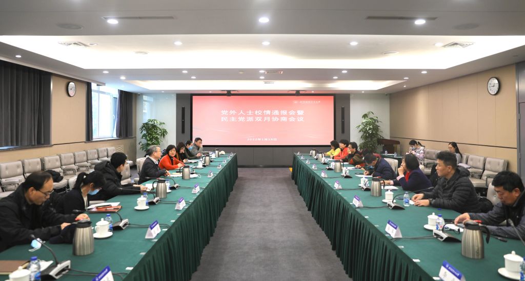 黄海军向党外人士传达了全国统战部长会议有关精神,并通报了2021年学校发展建设主要情况。他指出,2021年大事多、喜事多,是党和国家历史上具有里程碑意义的一年,学校隆重庆祝中国共产党成立100周年,扎实开展党史学习教育,有效推动中央巡视整改等,在各领域都取得了显著成绩。黄海军重点围绕党的领导与党的建设、学科建设、人才培养、师资队伍、科技创新和治理能力等方面介绍学校的发展情况,他强调,一年来,在全校教职工的共同努力下,学校各项工作成绩斐然,迈向了高质量发展新征程,学校的发展离不开党外人士的辛苦耕耘和共同努力,希望新的一年里,大家同心同向,接续奋斗,为学校“双一流”建设贡献智慧与力量。