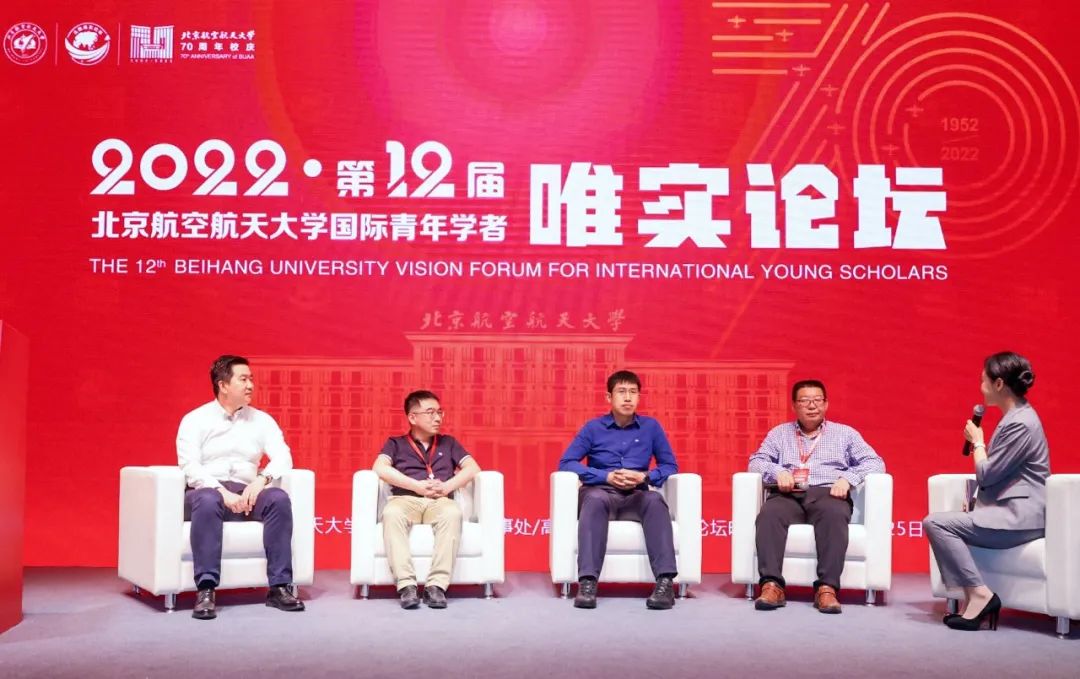 交流访谈环节,杨立军,赵巍胜,发展规划部副部长、学科建设处处长吴瑞林,优秀青年人才代表、物理学院杜轶教授介绍了学校发展规划、科研平台支持和资源保障、研究生资源、学科建设等方面的政策,分享了关于学校选择、个人发展的宝贵经验和心得体会,为参会的海内外青年学者答疑解惑、指引方向。