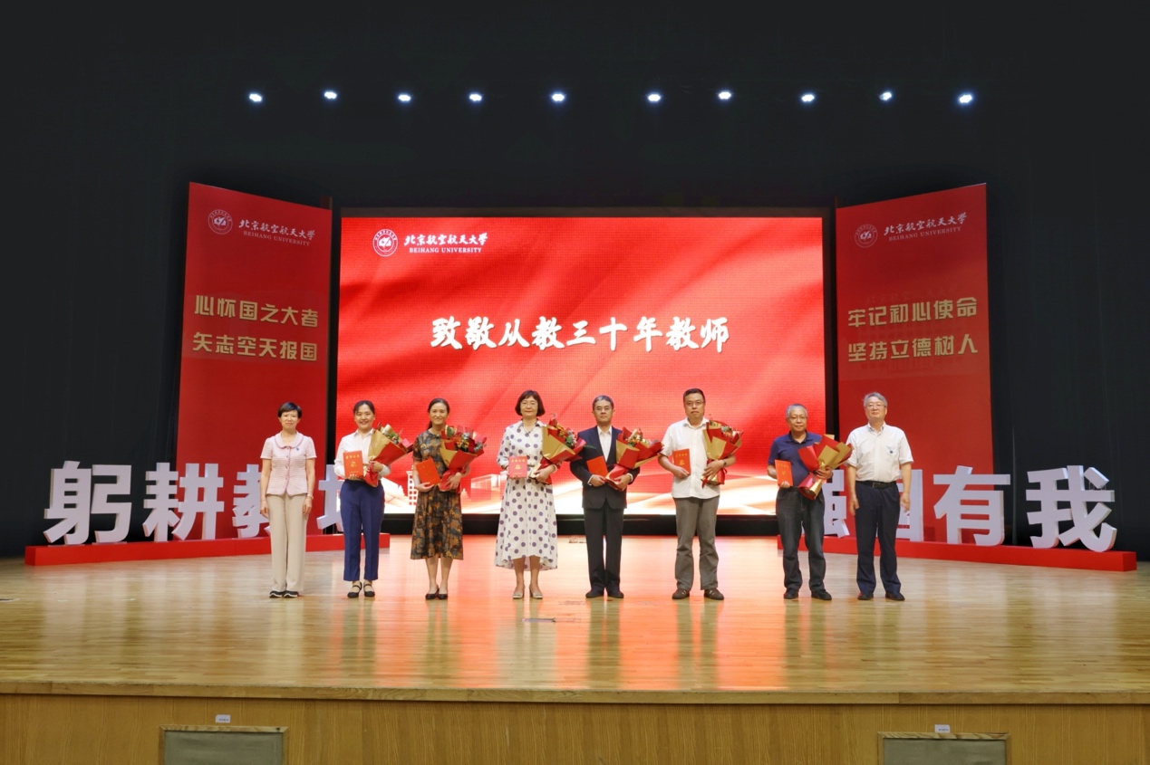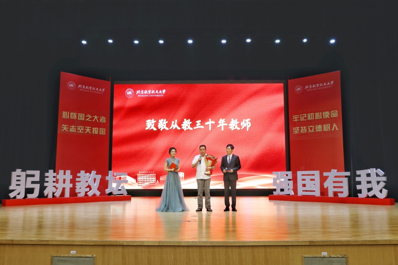 转自北航新闻网9月8日电(记者 王晴/文 邸白鹭 宋超 黄天嘉/摄影)9月8日下午,北航在晨兴音乐厅举行庆祝第39个教师节表彰大会。本次大会以“躬耕教坛 强国有我 立德树人 空天报国”为主题,致敬荣休教师、从教三十年教师以及在党建思政、教书育人、科技创新领域取得优异成绩的单位、团体及教师代表,与广大教师和教育工作者共庆节日。
