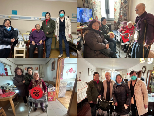 慰问组一行赴北京市第一福利院,慰问了92岁空巢归侨罗映梅老师,她一直盼望着侨联同志们的到来。登门看望了校侨联的两位寿星,99岁的甘篮春大夫和今年100岁的陈秀祖老师,让高龄老侨切身感受到组织的关怀。