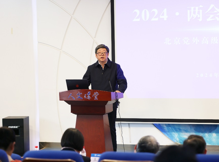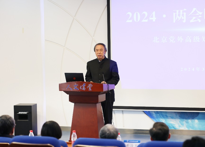 会议主持人、全国政协委员、北京画院院长,北京知联会轮值会长吴洪亮简要传达了全国“两会”精神,号召首都党外知识分子更加紧密地团结在以习近平同志为核心的中共中央周围,坚定信心、同心同德,埋头苦干、奋勇前进,为全面建设社会主义现代化国家、全面推进中华民族伟大复兴贡献出首都党外知识分子的智慧和力量。