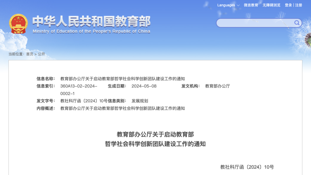 据悉,教育部哲学社会科学创新团队坚持以习近平新时代中国特色社会主义思想为指导,深入贯彻落实习近平总书记关于哲学社会科学工作、教育工作的重要论述,立足建设具有中国特色、中国风格、中国气派的哲学社会科学,瞄准学术前沿和国家重大需求,推动建构中国自主的知识体系,有效提升对教育强国、科技强国、人才强国的支撑力、贡献力。经过组织申报、资格审核、会议评审、答辩评审等环节,教育部研究确定34个创新团队为首批教育部哲学社会科学创新团队。