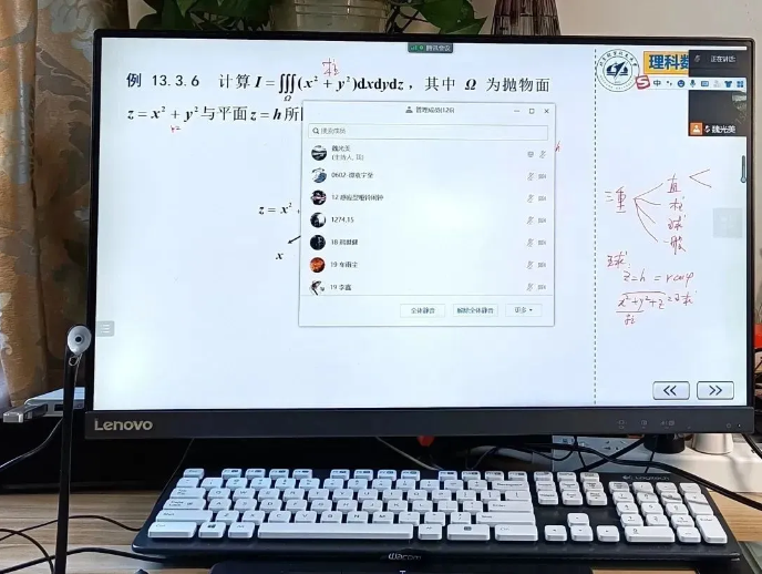 为了适应网上教学,魏老师将课件尺寸改为16:9格式,屏幕右边分隔出约1/5的面积,方便随时书写板书并保存发给学生