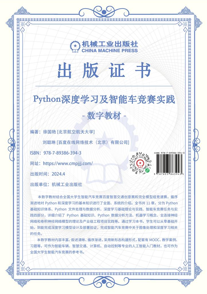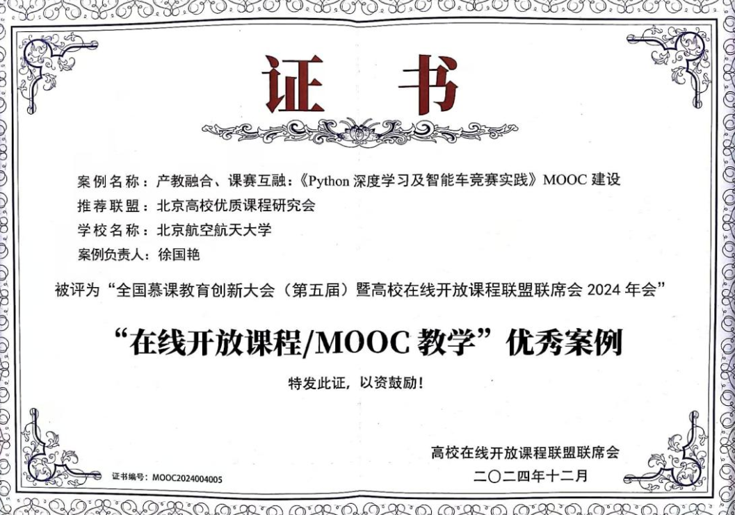 如今,该课程已吸引全国4000余名学员选课,并荣获"全国慕课教学创新大会在线开放课程优秀案例"。配套出版的新形态教材填补了国内智能车竞赛与AI融合领域的教材空白,形成"教材-课程-竞赛"三位一体的育人体系。